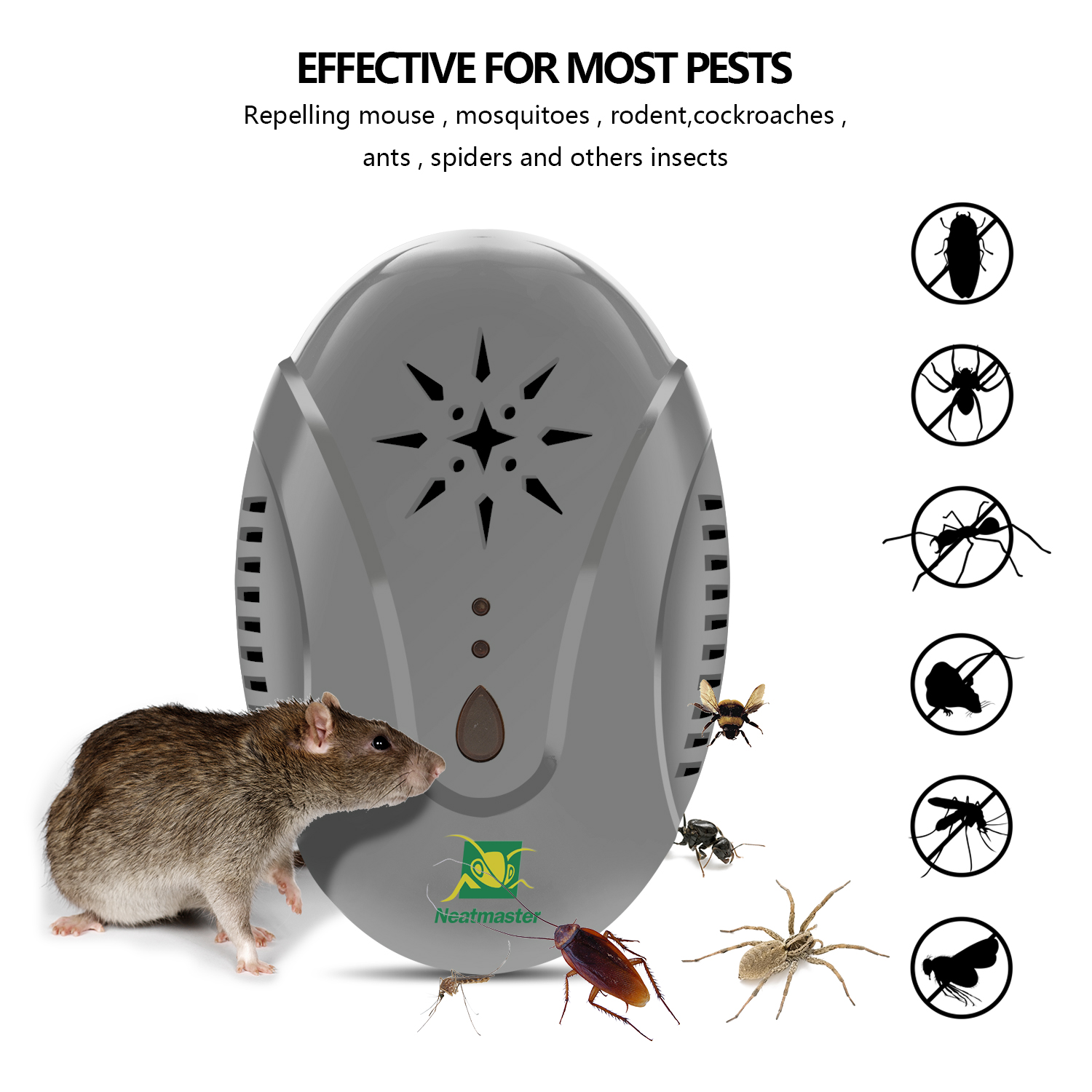 REPELLING PESTS FROM YOUR HOME : Neatmaster pest control products uses state of the art ultrasonic technology to drive pests away. Plugged into outlet, ultrasonic pest control device uses low frequency sound waves, which drive pests out of your home for good. Mice, rats, spiders, roaches, mosquitoes, ants ,snakes , rats; None are immune to the sound and completely leave after a few short weeks of use.Our electric pest repellent sound is In-Audible to the human and pet''''s ear